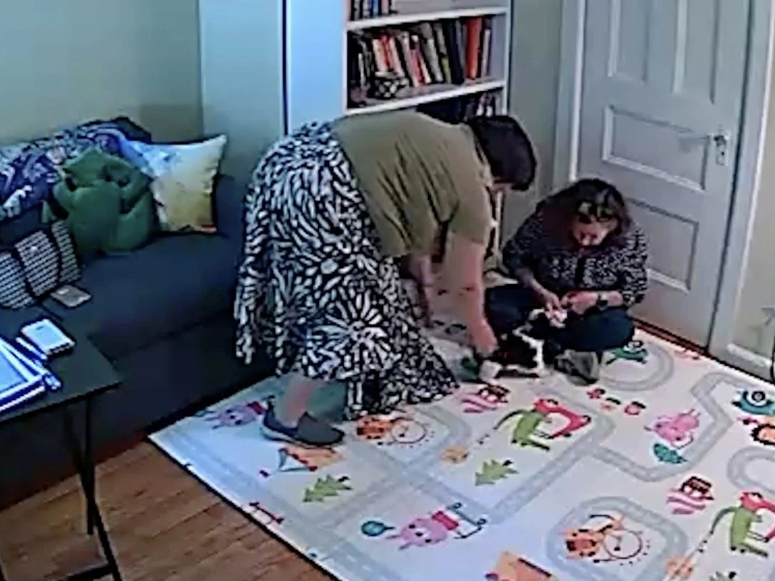 Another big highlight at seven weeks is temperament testing. These photo are poor quality, because they are pulled off the video footage. We have to stay out of the room as the temperament testing is done by neutral strangers. Temperament testing can be controversial, (more information here) but if done well and used correctly, it can give the breeder feedback on areas that the puppies might need work on in their final weeks before heading to their forever homes.